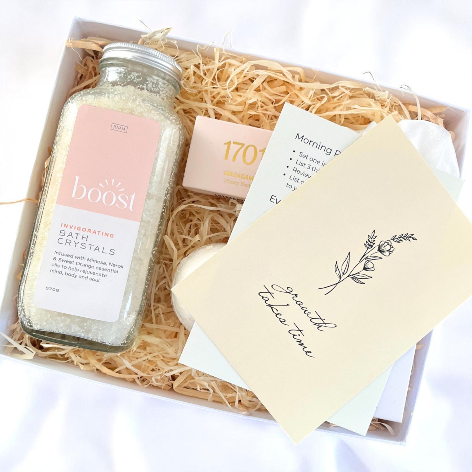 Whether it’s for a thoughtful gift, or a pick me up in a challenging time, this box is your reminder that growth takes time, and reflecting on your journey is important to keep you moving forward.
