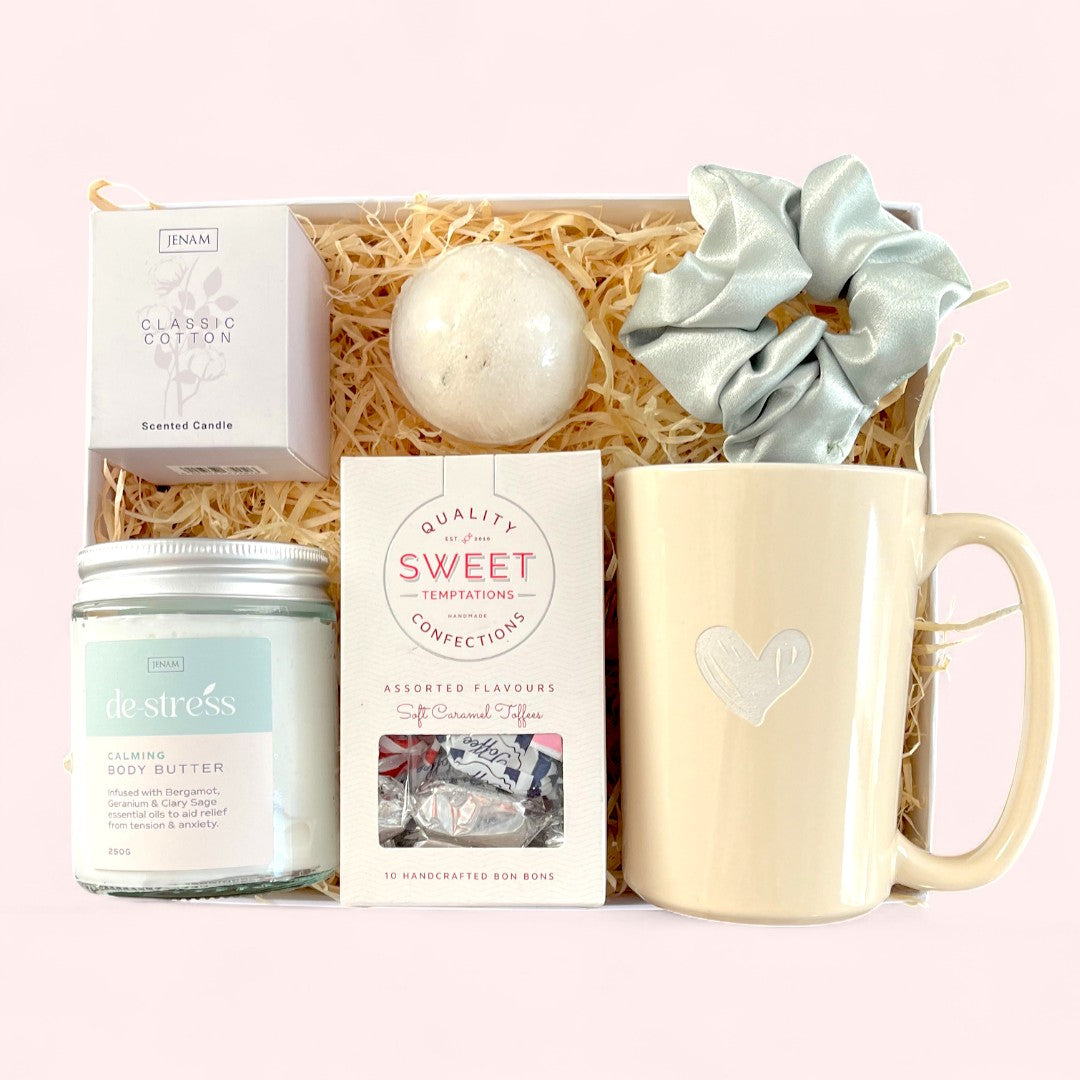 Packed with gentle goodies, from a rich, nourishing body butter to an exclusive ceramic mug, this thoughtful box is aimed to bring a moment of calm and joy the moment it's opened.