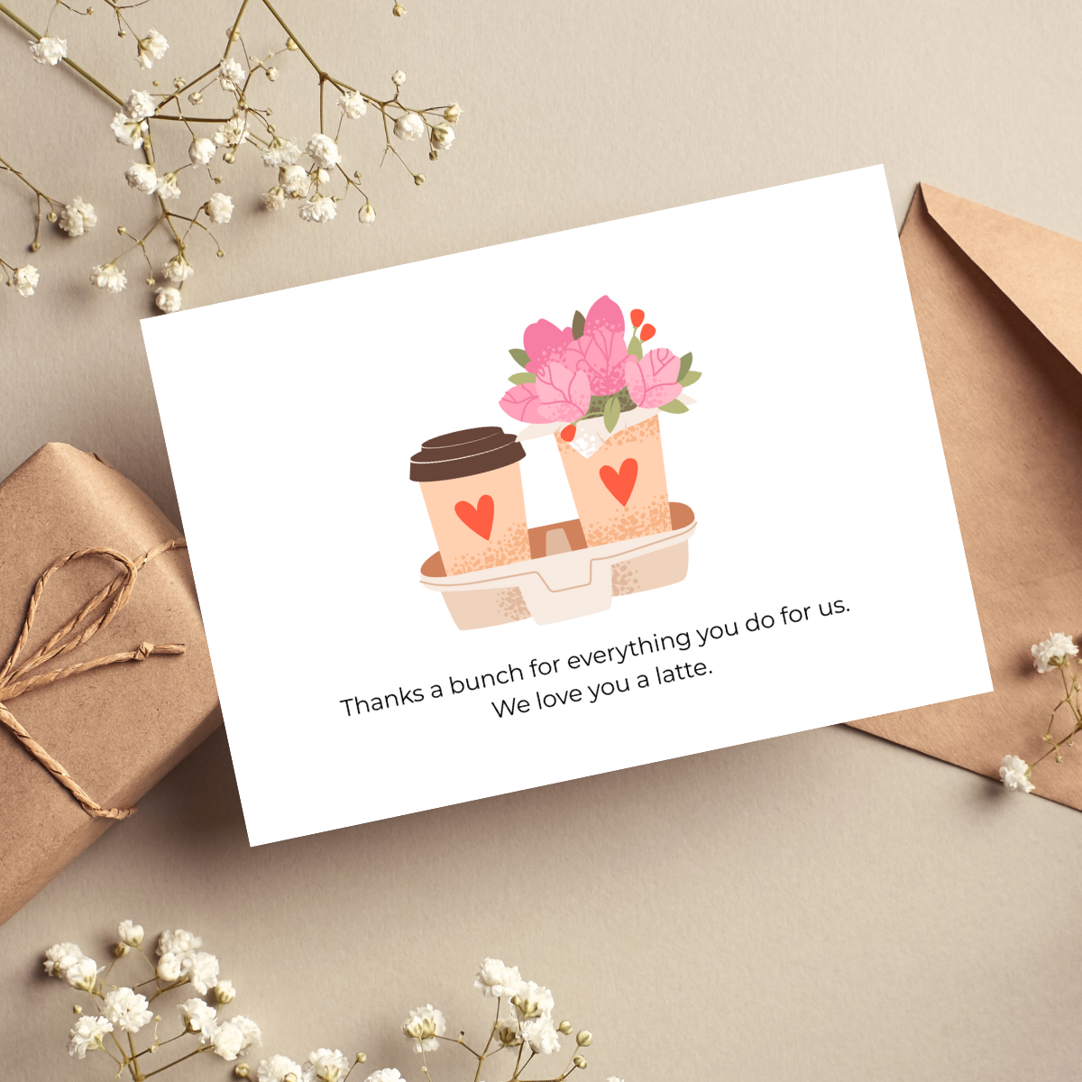 Thanks a bunch for everything you do for us. We love you a latte Card, a6